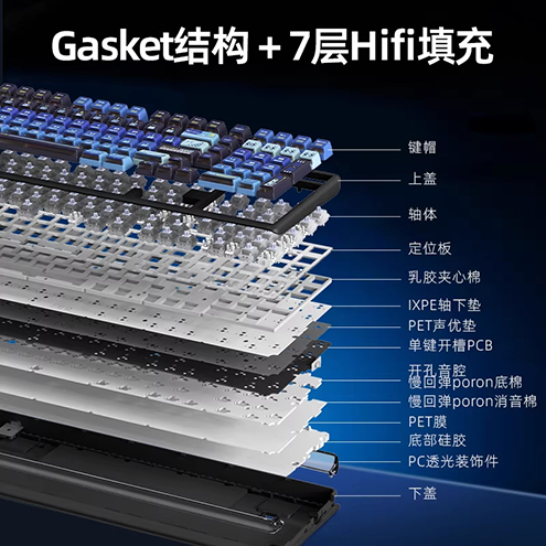 七层饱满填充|10000mAH大电池|弧形设计大灯箱|高颜值透光键帽